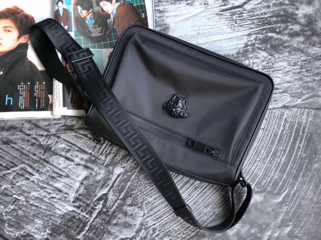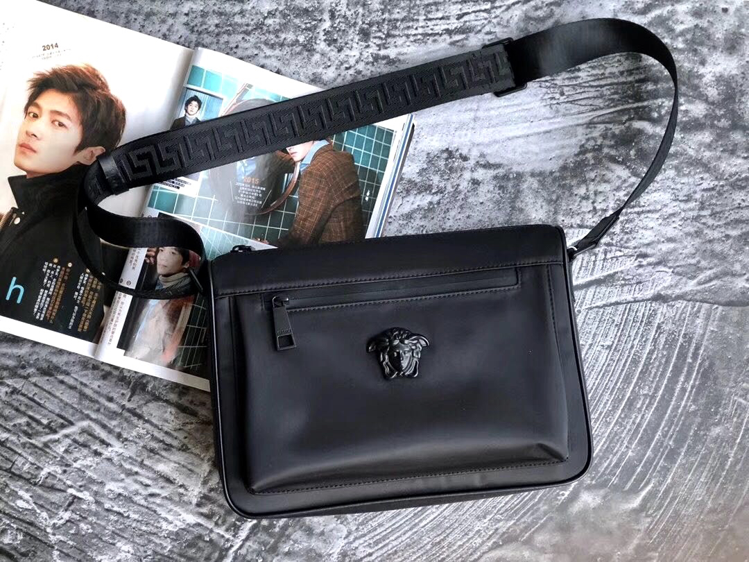 Tags: Black Leather Bag, Designer Messenger Bag, Luxury Crossbody Bag, Medusa Icon Bag, Versace Crossbody Bag