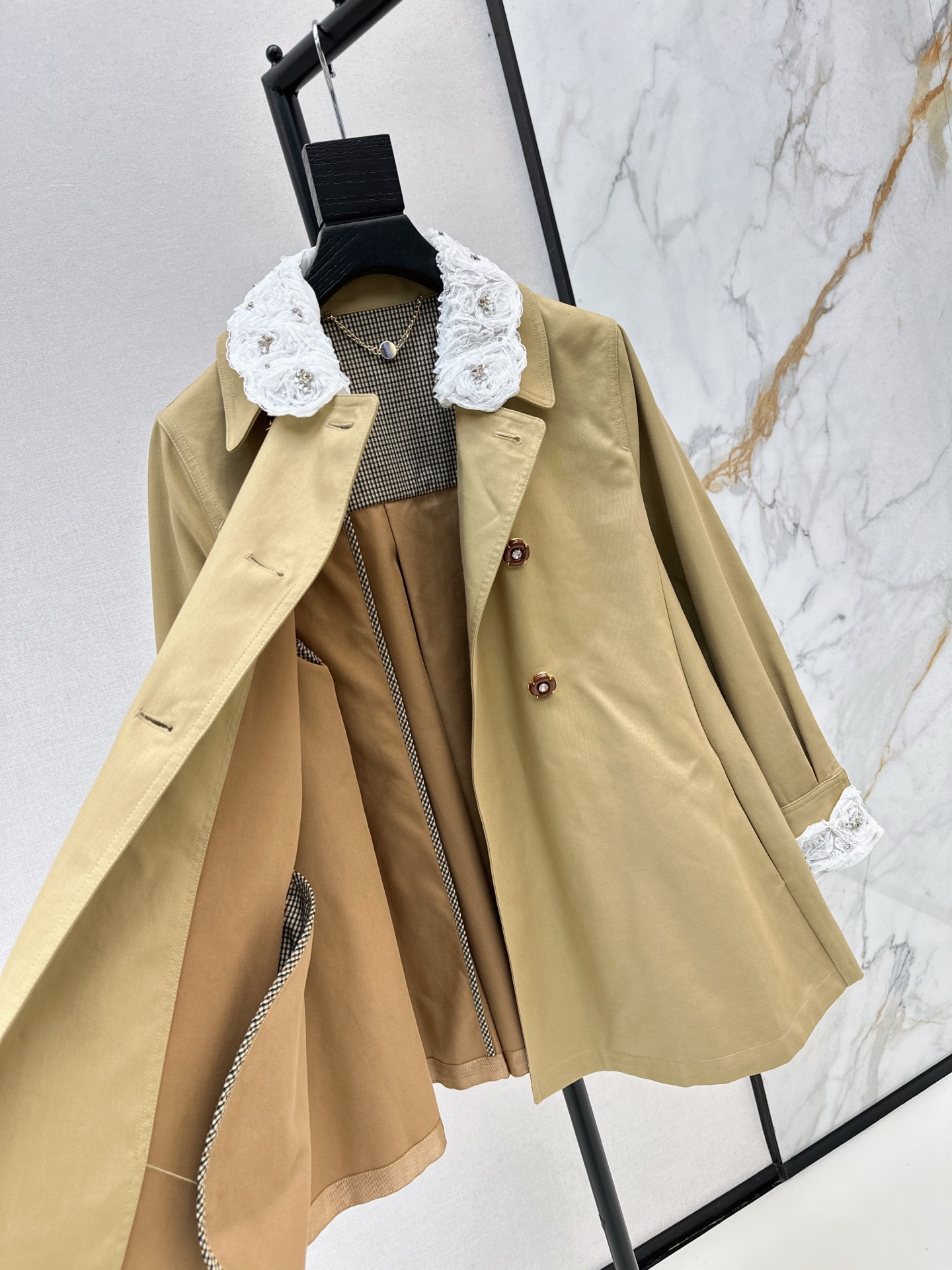This charming double-breasted trench coat is a must-have for your autumn and winter wardrobe. With its unique design and delicate lace detailing, it effortlessly combines sophistication with a touch of playful charm.