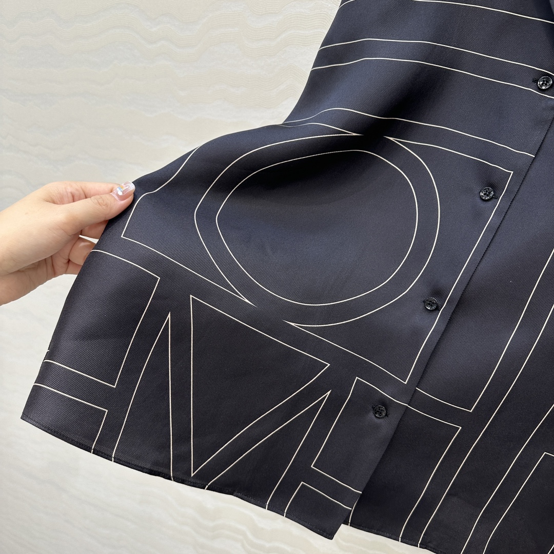 Tags: Button Down Shirt Women, Designer Silk Shirt, Letter Print Blouse, Long Sleeve Silk Top, Relaxed Fit Blouse, Silk Shirt Women