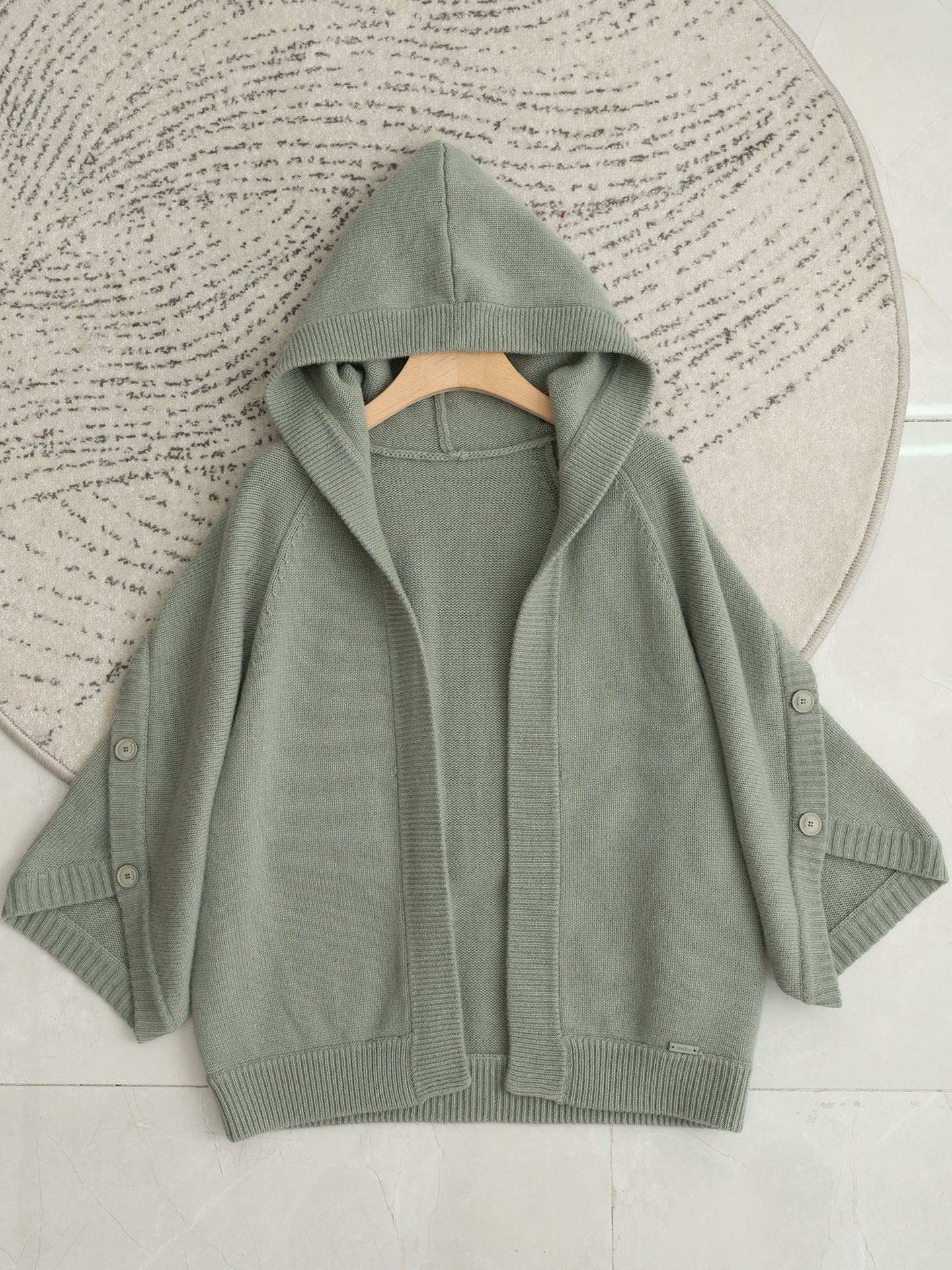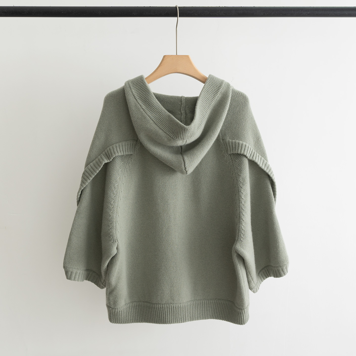 Tags: Batwing Sleeve Cape, Button Detail Cape, Hooded Cape, Knit Cape, Open Front Cape, Wool Blend Cape