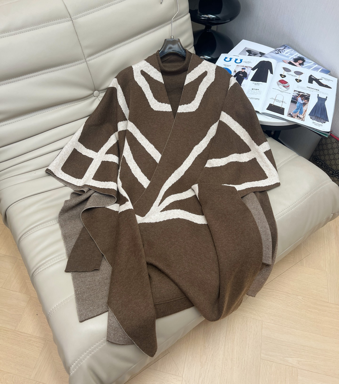 Wool Set: Elegant Autumn/Winter Cape with Pants, Soft & Warm Knitwear